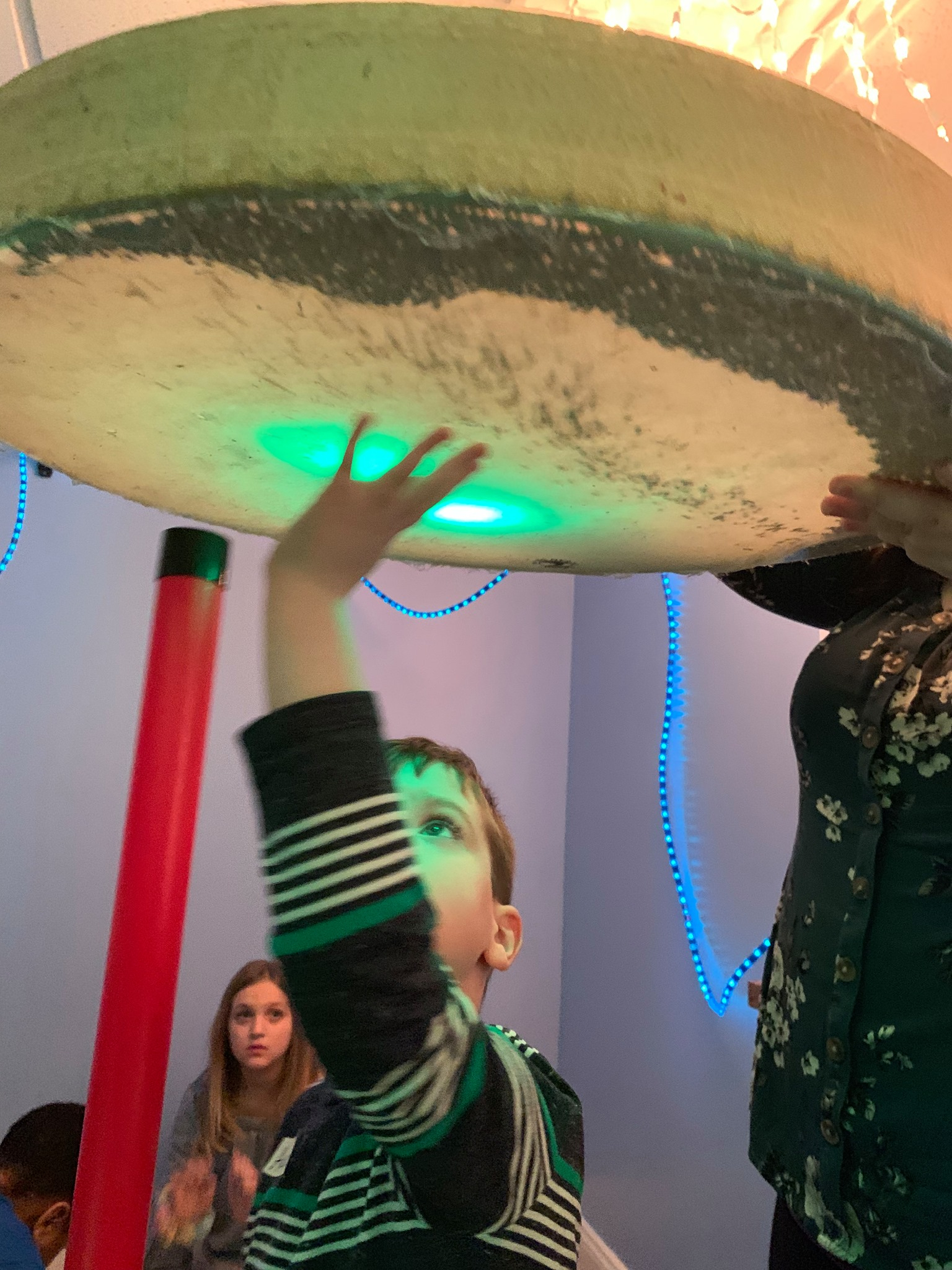 5. Parachute Superman Cool Down: A parachute was used to help start the cool down process. A giant fan was then paired with a capella singing to help the children feel like they were flying with Superman.