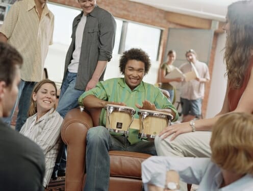 Are you looking for a way to help your students, after-school program, or even your business managers develop their leadership skills? Music can assist in the development of verbal and non-verbal communication skills, active listening, and other skill areas essential for strong leadership. Our clinical team is skilled at developing drum circles, improvisation sessions, and other musical interventions to work on leadership skills. Our programs can be conducted during a one-time group or through a series of programs that build on each other. Our team will travel to your school, program, or business and we also provide programming for groups up to 15 people at our clinic located in Southington.