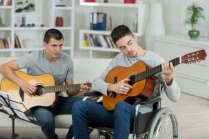 We offer music lessons to children and adults of all ages and abilities in their homes, in our clinics, and at other locations. We work with children and adults with and without disabilities. We use a client-centered approach when designing each music lesson so the person learns to love playing instead of it becoming “just another thing to do”.